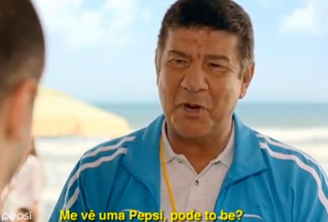 Já a peça publicitária da Pepsi escolheu brincar com o inglês macarrônico do técnico Joel Santana. No comercial de TV, ele é convidado a ajudar dois rapazes a abordar duas jovens estrangeiras porque, ali na praia, Santana é o único intérprete disponível. O comercial da Pepsi na verdade estabelece identidade entre o refrigerante e o técnico. Se não há um intérprete melhor, pode ser aquele mesmo, e ele resolve. Em outras palavras: em vez de se constranger diante da vitória da concorrência, a Pepsi brinca com (e capitaliza) o próprio segundo lugar entre os sabores cola.