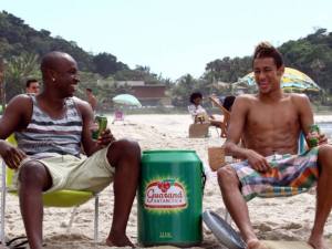 Outro comercial de TV prefere mostrar o ídolo da bola Neymar esnobando a oportunidade de jogar fora do Brasil. Para quê? Ele tem tudo aqui! Principalmente sol e praia.