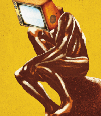 O Pensador na versão de Gonçalo Viana.Creio ser questão de tempo para esse império das telenovelas ruir, a menos que se recicle. Com poucas exceções, as tramas têm batido sempre nas mesmas teclas: filhas ou filhos que, adultos, descobrem seus verdadeiros pais; disputa entre irmãos pelo controle da empresa da família; prisões injustas (toda telenovela brasileira não resiste a meter algum personagem na cadeia, geralmente o protagonista); riqueza perdida e depois recuperada; relacionamentos clandestinos; a descoberta de uma doença grave que provoca reviravolta na vida de personagens.